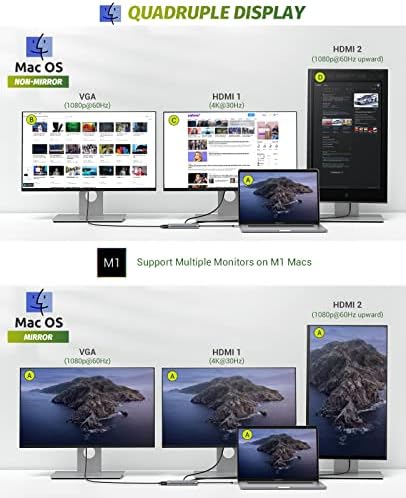 Multi-screen expansion on Apple system is no longer an annoying dilemma! UtechSmart Docking Station For MacBook Pro/ MacBook Air is designed to break the limitation of mirroring-only support on Apple systemsand integrate seamlessly with Windows. Working like charm actually expands QUADRUPLE DISPLAYS for MacOS and Windows instead of just mirroring!