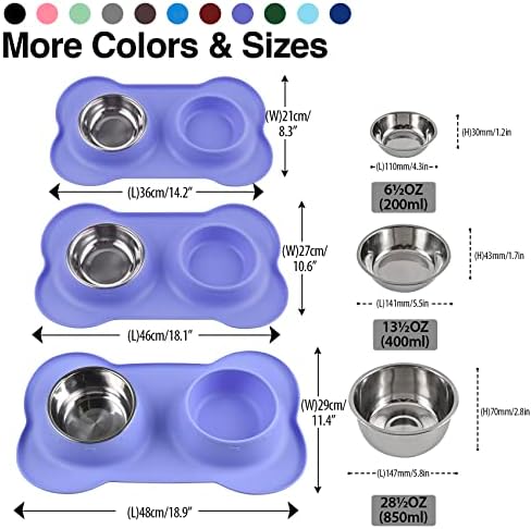 PET BOWL SPECIFICATION: our dog bowl set includes 2 stainless 28½ fl oz(850ML) each bowls (6.1″ Dia x 2.9″ H) and one mat of 18.9″ x 11.4″ x 2.9″ to feed food and water for your medium sized dog or cat