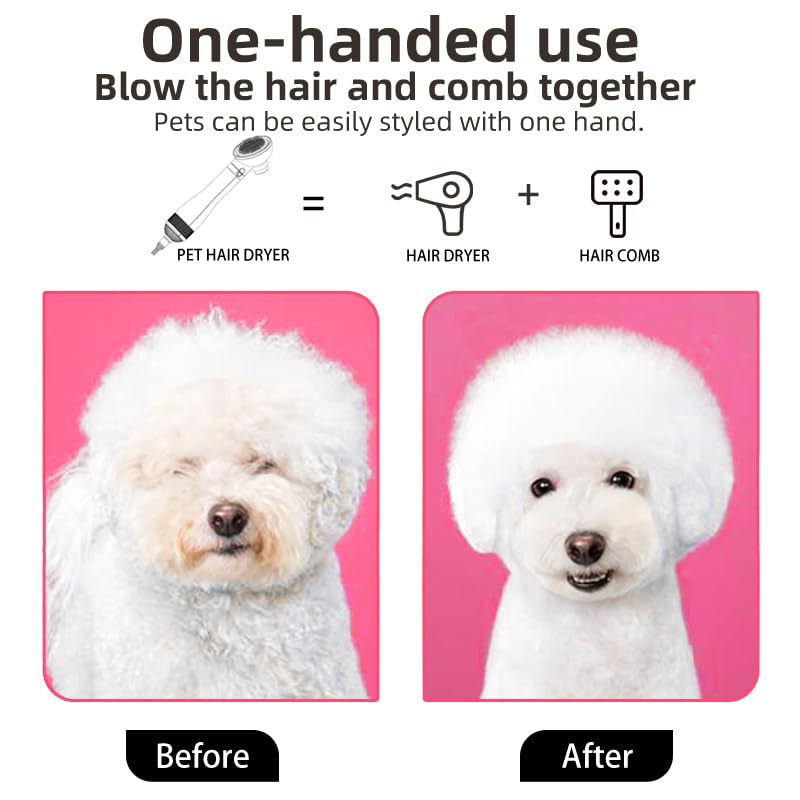 2-in-1 Deisgn: Pet hair dryer helps you dry and brush pet’s hair at the same time, Easily remover matted hair and tangles from your pet’s coat while drying
