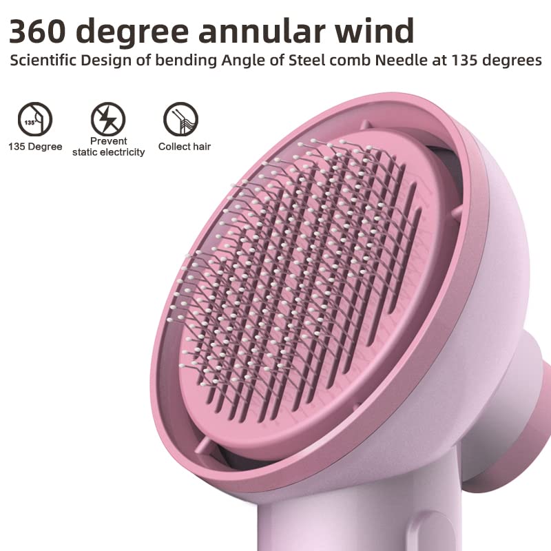 Dog Hair Dryer, Portable Pet Slicker Brush for Short or Long Hair, 2 in 1 Pet Gentle Grooming Blower Dryer for Dogs and Cats (Sakura Pink)