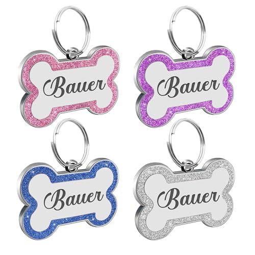 Personalized Glitter Dog Tag: Glittery bone stainless steel pet ID tags for collars or harnesses, It is the unique personalized gift only for your pet. you can personalized any name and your phone number in case your puppy gets lost.