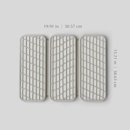 SPACE-SAVING DESIGN – With dimensions of 19.9″ in length and 15.2″ in width when fully extended, this drying pad provides generous space for multiple dishes while maintaining clutter-free countertops. Its collapsible design allows for effortless storage, folding down to a third of its size to fit neatly into drawers or cabinets.
