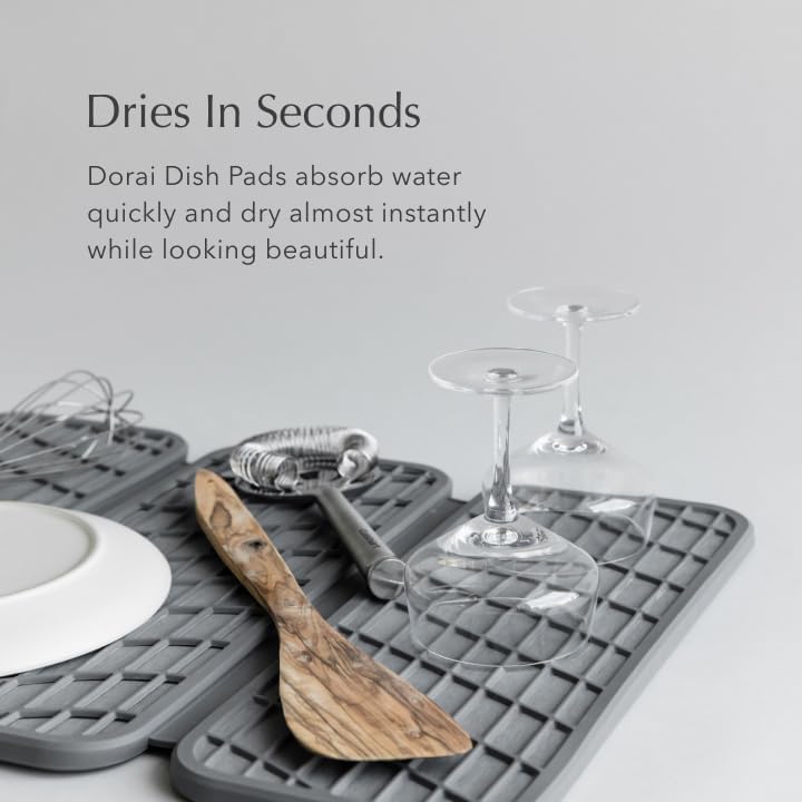 Dorai Home Dish Pad | Diatomaceous Earth Stone Drying Mat For Kitchen Counter | Quick Drying | Stone Dish Drying Mat For Kitchen | 19.9″ x 15.2″ x 0.52″ | Slate
