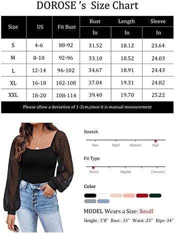 Long sleeve shirts is soft and comfortable to wear. Full of elasticity, enough room for everybody to wear, easy dress on or dress up. Perfect fit.Womens tops, mesh long sleeve, square neck, swiss dot, puff sleeve, ribbed, polka dot, slim fitted, super cute & delicate top.