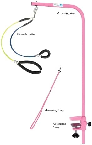 Downtown Pet Supply Dog Grooming Arm with Clamp and Grooming Loop, 1 Haunch, Pink – Adjustable, Steel Grooming Table Arm with Table Clamp, No Sit Haunch Holder Dog Grooming Restraint and Loop