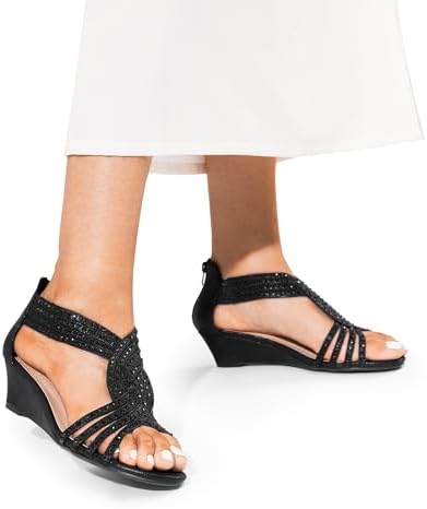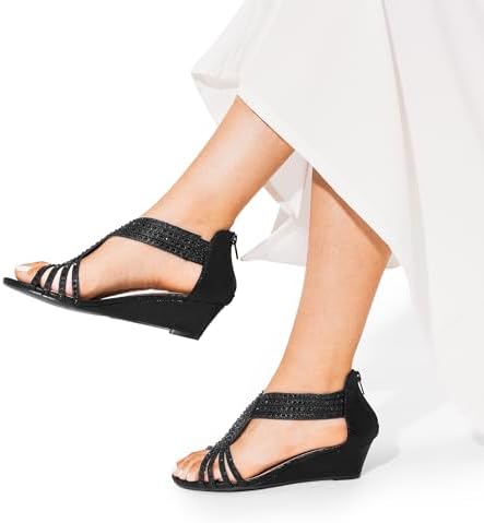 DREAM PAIRS Women’s Wedge Sandals, Comfortable Open Toe Rhinestone Shoes for Party, Wedding, and Fashion Dress