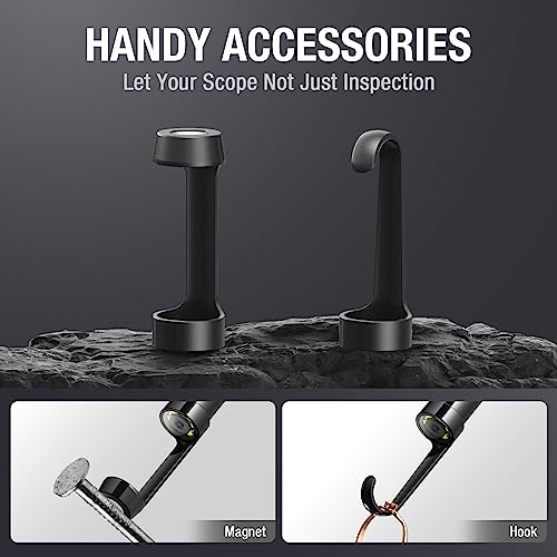 Included with this Endosocpe kit are 2 helpful accessories: a Hook attachment for object retreivals & a Magnet attachment for metallic objects that are just out of reach.