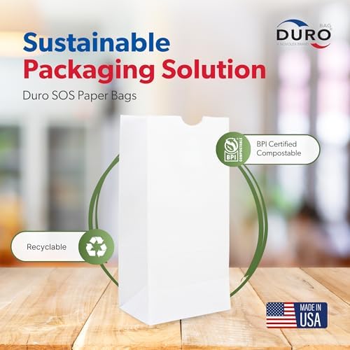 Versatile and Easy To Use: Duro 12# Dubl Life SOS bag at size 7.06 x 4.50 x 13.75 inches. Ideal for lunches, takeout, delivery meals & more. These white paper bags feature SOS bottoms for easy standing, making packing & display easy. Duro white paper lunch bags are also suitable for crafting, gifting, parties, snack bags, treat bags, sandwich bags, popcorn bags, shopping bags, retail bags, grocery bags, take-out food, dry goods & more. Ideal for any occasion for personal or business use.
