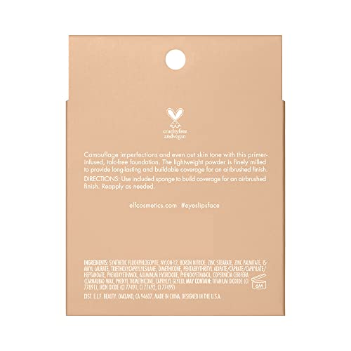 e.l.f. Camo Powder Foundation, Lightweight, Primer-Infused Buildable & Long-Lasting Medium-to-Full Coverage Foundation, Light 210 N