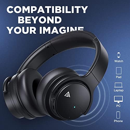 E7 Active Noise Cancelling, Wireless Over Ear Bluetooth Headphones, 20H Playtime, Rich Deep Bass, Comfortable Memory Foam Ear Cups for Travel, Home Office -Matte Black