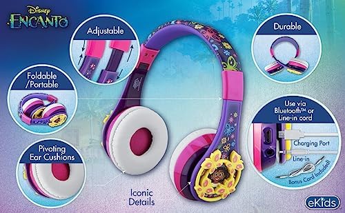 Perfect Gift: Kids wireless headphones feature cool graphics inspired by the popular film. Encanto headphones look great on any little Disney fan, and makes the perfect gift for any occasion. Visit the ekids brand store to explore even more cool products!