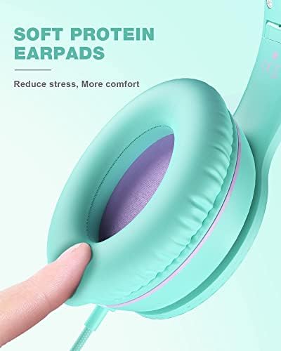 ELECDER i45 On-Ear Headphones with Microphone – Foldable Stereo Bass Headphones with No-Tangle 1.5M Cord, 3.5MM Jack, Portable Wired Headphones for School/Kids/Teens/Smartphones/Travel/Tablet – Green
