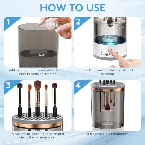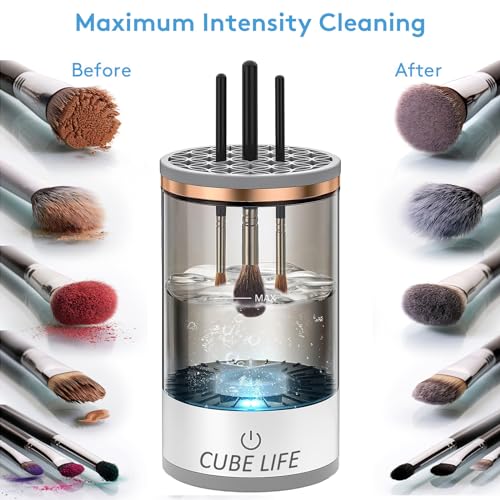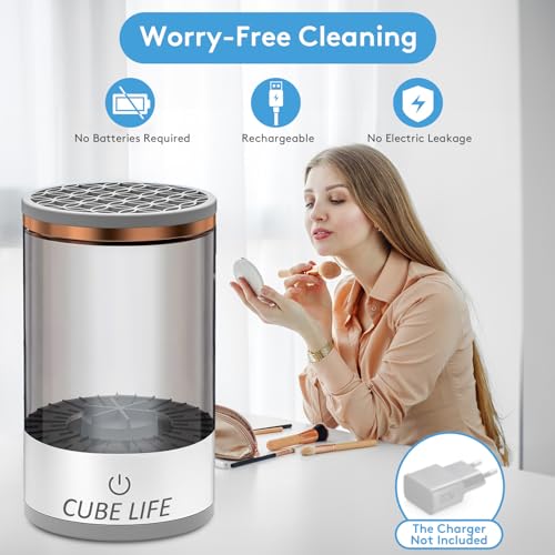 💖Thorough and Gentle Cleaning: The CUBE LIFE Electric Makeup Brush Cleaner utilizes state-of-the-art technology to ensure a thorough and gentle cleansing of your makeup brushes. Its powerful yet gentle motor rotates and cleans each bristle, effectively removing makeup residue, oil, and impurities.