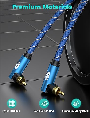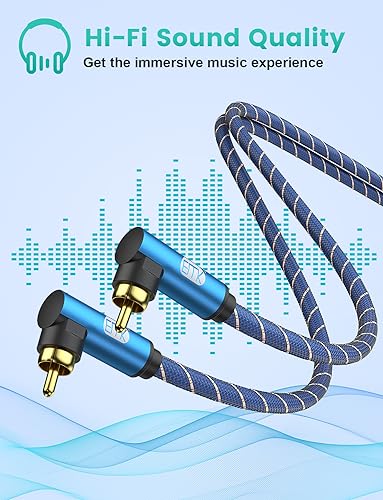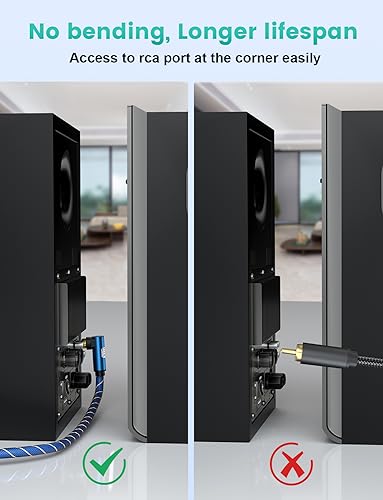 Hi-Fi Sound Quality: 90 Degree rca cable polished metal molding and corrosion-resistant 24K gold-plated connectors for optimal pressure and conductivity ensure reliable performance and minimal signal loss.