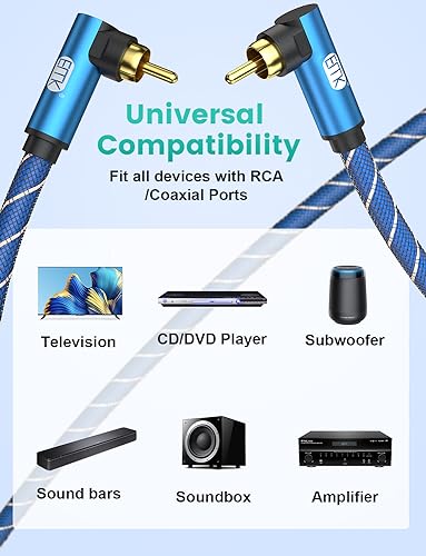 EMK 90 Degree Subwoofer Cable RCA Cable Male to Male Digital Coaxial Audio Cable for Subwoofer, TV, Sound Bars, Amplifier,Speaker (26Feet/8M)