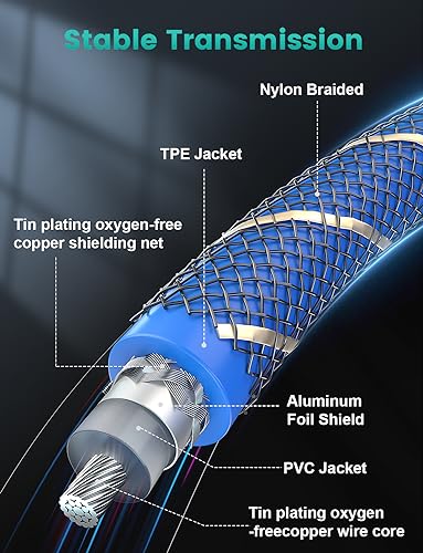 Premium Material:With a 10,000+ bend lifespan several times longer than original audio cables,high quality nylon jacket contributes to the strain-relief construction that not only provides flexibility, but also protects the cable from kinks.