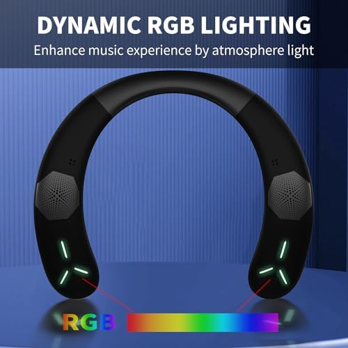 ENUOSUMA Neckband Bluetooth Speaker, Neck Speaker Bluetooth Wireless with True 3D Stero Sound, Wearable Speaker with Dynamic GRB & AUX, Portable Soundwear for Home Sport Outdoor, Black