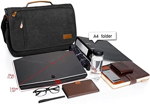 ESTARER Messenger Bag 17-17.3 Inch, Men’s Computer Bag Water-resistant Canvas, Laptop Shoulder Bag for Travel Work College, Dark Grey