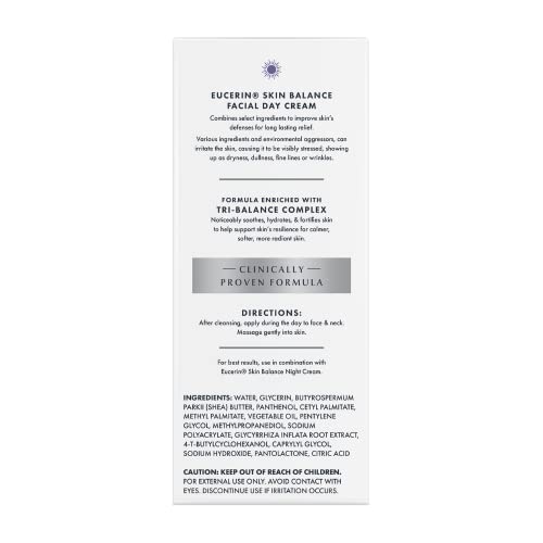 Eucerin Skin Balance Day Cream, Sensitive Skin Face Moisturizer Enriched with Tri-Balance Complex, 1.7 Oz Bottle