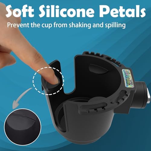 Anti-slip Design: Inner of cup holder is designed with soft silicone petals which can fix the cup in place to prevent the drink from shaking and spilling. The opening edge can accommodate cups with handles, stable fit any cup shape!