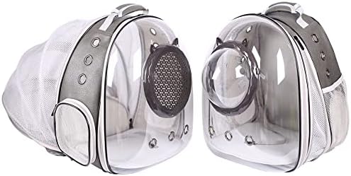 Color: Grey/BrownSpacious room for bigger cat/small dog, Fit pet up to 20lbsHard shell window for pet to have a clear and broader view outsideStury and high quality, give your pet a luxury houseBoth bubble dome and honeycomb covers included in the packing listDesigned for pet travel, hiking, camping and other outdoor activity
