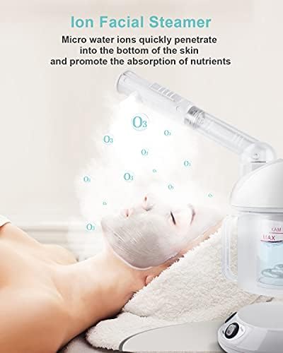 Soothing facial steamer function is built in to moisturize and enhance your skin. Use this steamer to open and clean your pores, exfoliate dead skin, and remove dirt & excess oil. Leave your skin looking and feeling fresh, smooth and radiant. The deep penetrating ion water particles will enhance the absorption of your skin to allow for more effective use of skin cleansers, toners, or scrubs after steaming.