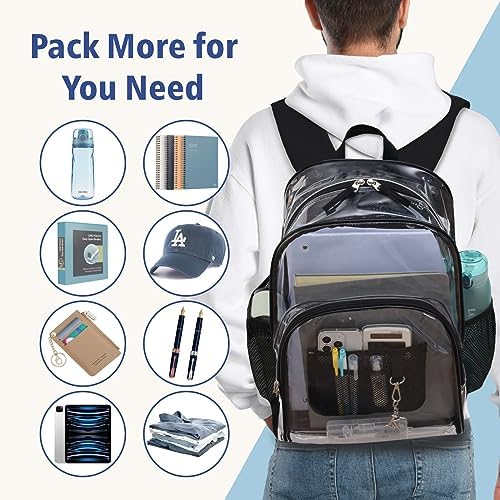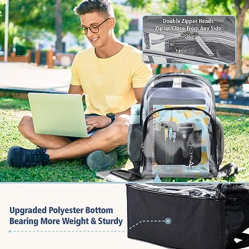 F-color Clear Backpack Heavy Duty – Large Clear Backpacks for School PVC Transparent Bookbag for Students Work Travel
