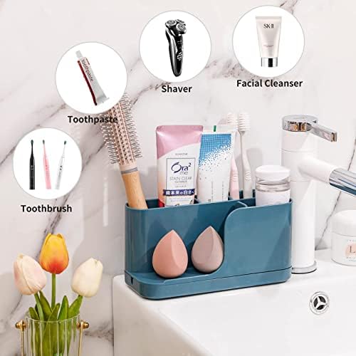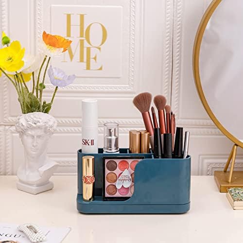 FABROK Makeup Brush Holder, Plastic Cosmetic Organizer, Comb Brush Pen Pencil Storage Organizer for Vanity, Cosmetic Tools Organizer for Valentine Gift Bathroom Bedroom Dresser Office(Blue)