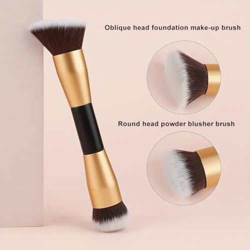 Face Foundation Brush, 2in1 Double Ended Makeup Brushes, Blush Brush, Loose Powder Brush for Blending Liquid Powder, Concealer Cream Cosmetics Makeup Tools (RoseGold)