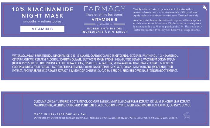 Farmacy 10% Niacinamide Facial Mask – Smoothing & Hydrating Skin Care Face Mask – Panthenol & Niacinamide Cream – Overnight Face Mask, 9 ml