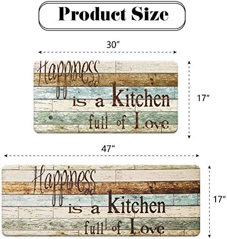 Farmhouse Kitchen Mats Sets 2 Piece Cushioned Anti-Fatigue Comfort Mat for Home & Office Ergonomically Engineered Memory Foam Kitchen Rug Waterproof Non-Skid, 30″ by 17″ + 47″ by 17″,Happiness