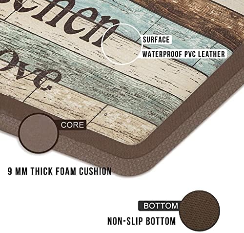 Farmhouse-themed and rustic patterns fit most kitchen decors Special surface pattern design with antique finishes. Designed to be elegant and to provide a warm accent for the home kitchen. These kitchen floor rugs and mats will meet any home and kitchen decor.