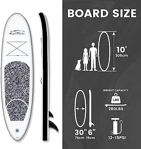 FEATH-R-LITE Inflatable Stand Up Paddle Board 10’x30”x6” Ultra-Light (16.7lbs) SUP with Paddleboard Accessories,Three Fins,Adjustable Paddle, Pump,Backpack, Leash, Waterproof Phone Bag