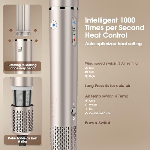 【35MM AUTO-WRAP CURLERS L/R 】 — FENTFO hair dryer brush features a powerful airflow that blows out from the curler attachment, creating a continuous clockwise surrounding airflow, for an enhanced Coanda effect that makes hair automatically adhere to the surface. This results in voluminous, smooth, and natural curls without extreme heating. Includes 2 auto wrap hair curler to curl in different directions.
