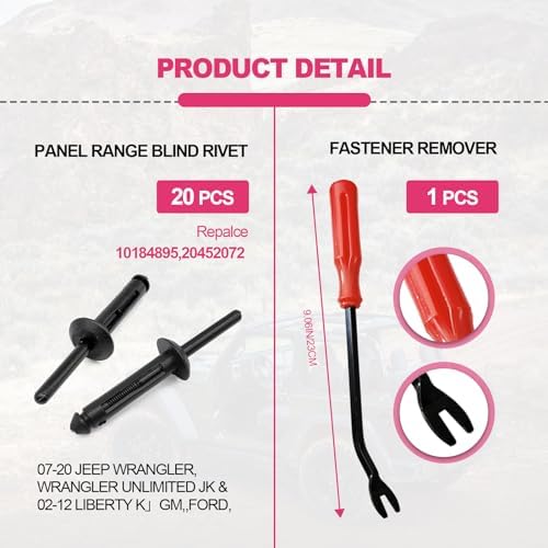 These clips are designed to fit GM, Chrysler, Ford and Jeep, including 2007-2022 Jeep Wrangler JK JL & Unlimited, 2005-2010 Grand Cherokee, and 2002-2010 Liberty KJ & KK.
