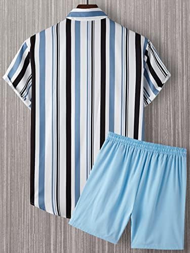 Floerns Men’s Two Piece Outfit Printed Shirt Top and Drawstring Waist Shorts Set