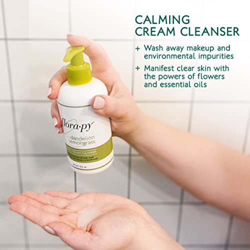 Florapy Beauty Calming Cream Cleanser Infused with Dandelion Lemongrass Aromatherapy, Skincare Meets Selfcare, Makeup Remover, Ultra-Gentle Ingredients, Clean Beauty Formula