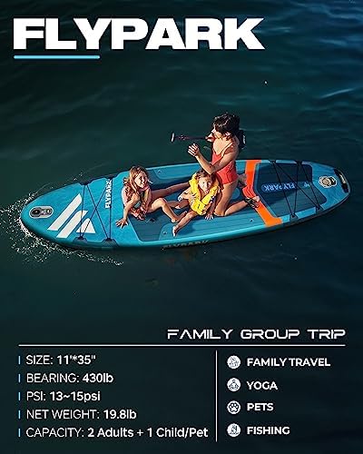 👪3” EXTRA WIDE FOR BETTER BALANCE | Flypark Inflatable Stand Up Paddle Board is made with extra 3” in width than the normal 32” board. Only 20lbs deflated and carry up to 430 lbs‼ 11’*35” is ideal to provide better stability and striking balance, ideal for versatile use of all skill levels and all scene. The paddle board is perfect for family, large size people, 2 people with pets and beginner friendly. Feel free to go for yoga, fishing, traveling!