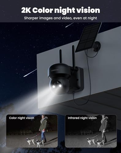 FOAOOD 2K Security Camera Wireless Outdoor, Sloar Camera for Home Security Outside, APP Controls 360° Full Coverage, Color Night Vision, Human Detection, IP65 Waterproof, 2.4G WiFi Connection
