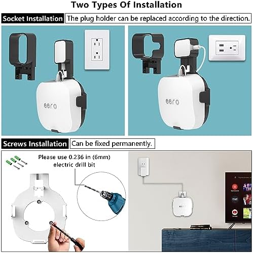 [Two types of installation] The eero Pro 6 & Pro 6E bracket can be socket mounted and screw mounted. So it is more practical and can meet all your installation needs.