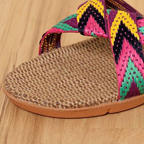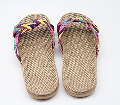 FRALOSHA Women’s Summer Slippers Flax Cross House Shoes Indoor Breathable Outdoor Sandals