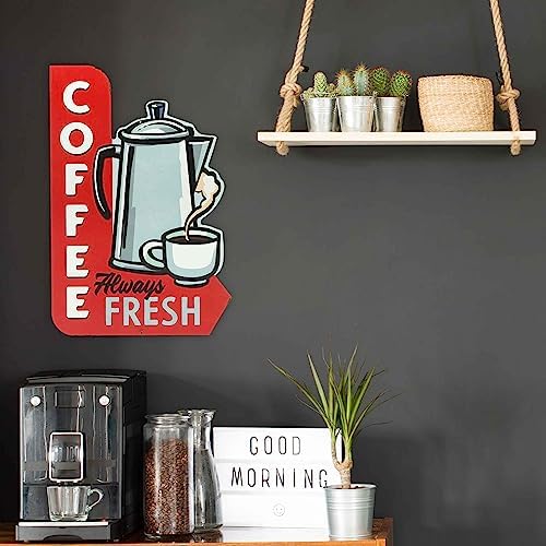 Fresh Coffee Metal Sign – Vintage Coffee Diner Sign With Retro Arrow Die Cut Design for Kitchen, Dining Room or Coffee Bar