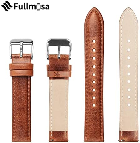Fullmosa 18mm Leather Watch Bands Compatible with Garmin Vivoactive 4S/Vivomove 3S/Active S/Venu 2S/Move 3S, Huawei Watch 1st,Brown+Silver Buckle