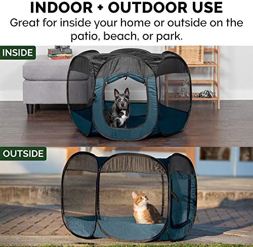 DESIGNED FOR PETS: The playpen tent promotes comfort and security, providing dogs and cats a safe enclosed space for lounge and play; the 360-degree light mesh window view and ceiling delivers great airflow, as well visibility for anxious pets and owners