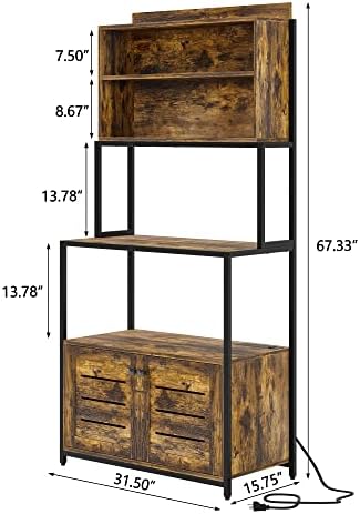 Furniouse 5-Tier Kitchen Bakers Rack with Power Outlet, Industrial Microwave Oven Stand with Shelves, Kitchen Utility Storage Shelf with Cabinet, Standing Kitchen Storage Rack, Rustic Brown