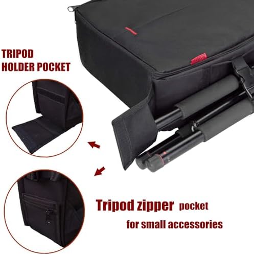Exterior Dimensions: 14″ x 10″ x 5″ . Holds and protects a DSLR camera and lens, 3-4 additional lenses, a shoe-mount flash, plus a compact tripod or monopod.