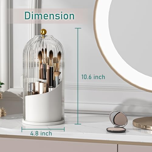 GAXmi Makeup Brush Holder with Lid Cosmetic Tools Organizer 360 Rotating Waterproof Dustproof Makeup Brushes Storage for Vanity, Transparent