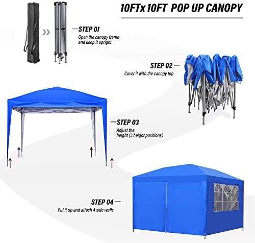 GDY 10x10ft Pop-up Paint Tent, Canopy Tent, Instant Shelter Portable Outdoor Canopies with 4 Removable Side Walls, Blue.…