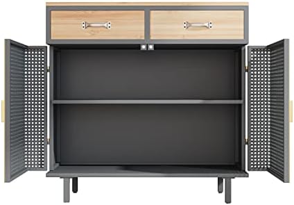 Bring an extra level of charm to your living room or entryway with this exquisite sideboards. This sideboard is designed with minimalist style along with a stable structure to make a unique statement, which provides powerful practicality rather than a household adornment.The sideboard is equipped with 2 drawers and a closed cabinet, which can provide ample storage space for your daily use. Complete your home hallway, living room or bedroom with a casual two-door cabinet featuring two-tier storage. Place your favorite pictures, plants or a lamp on the spacious top while storing clothes, daily necessities and books in the closed cabinet.