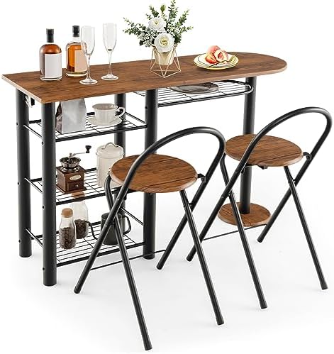 Be the first to review “Giantex 3-Piece Bar Table Set – Counter Height Dining Table & 2 Foldable Chairs w/ 4-Tier Storage Shelves, Anti-Toppling Device, Breakfast Dinette Furniture, Space-Saving Dining Set for Kitchen Bar”